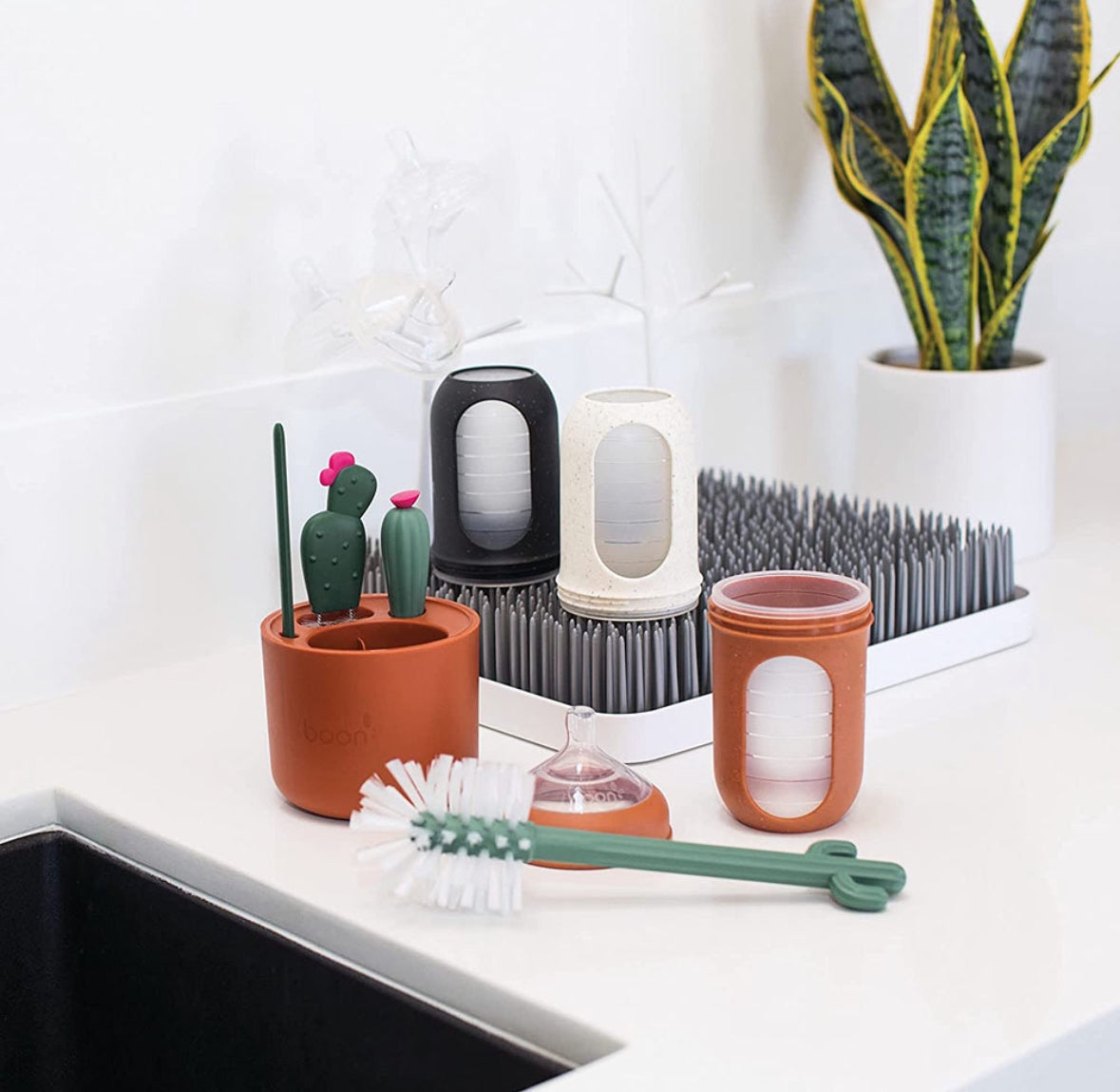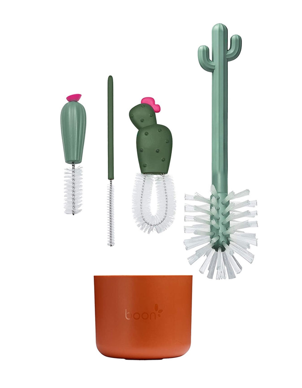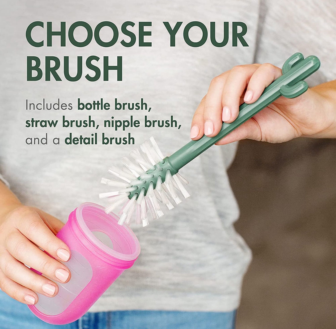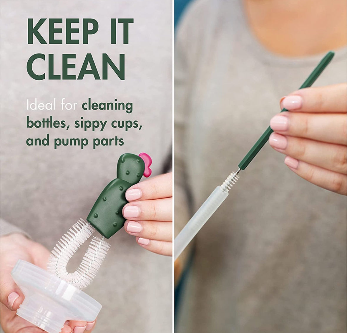 كوني أنيقة! مجموعة فرش بون كاكتي تُسهّل التنظيف وتبدو أنيقة أثناء الاستخدام! تحتوي هذه المجموعة الكاملة على أربعة صبار بأحجام مختلفة، لكنكِ لن تقلقي أبدًا بشأن الوخز. الشعيرات الوحيدة في فرش التنظيف هذه مصنوعة من النايلون المتين، وهو مثالي لإزالة الأوساخ من زجاجات الأطفال، والماصات، وأكواب الشرب، وأجزاء مضخة الثدي. المزهرية تُصرّف الماء وتُبقي الفرش متماسكة ليسهل عليكِ اختيار الفرشاة المناسبة تمامًا. هذه المجموعة الجميلة من الفرش تُتيح لكِ تنظيفًا مثاليًا.