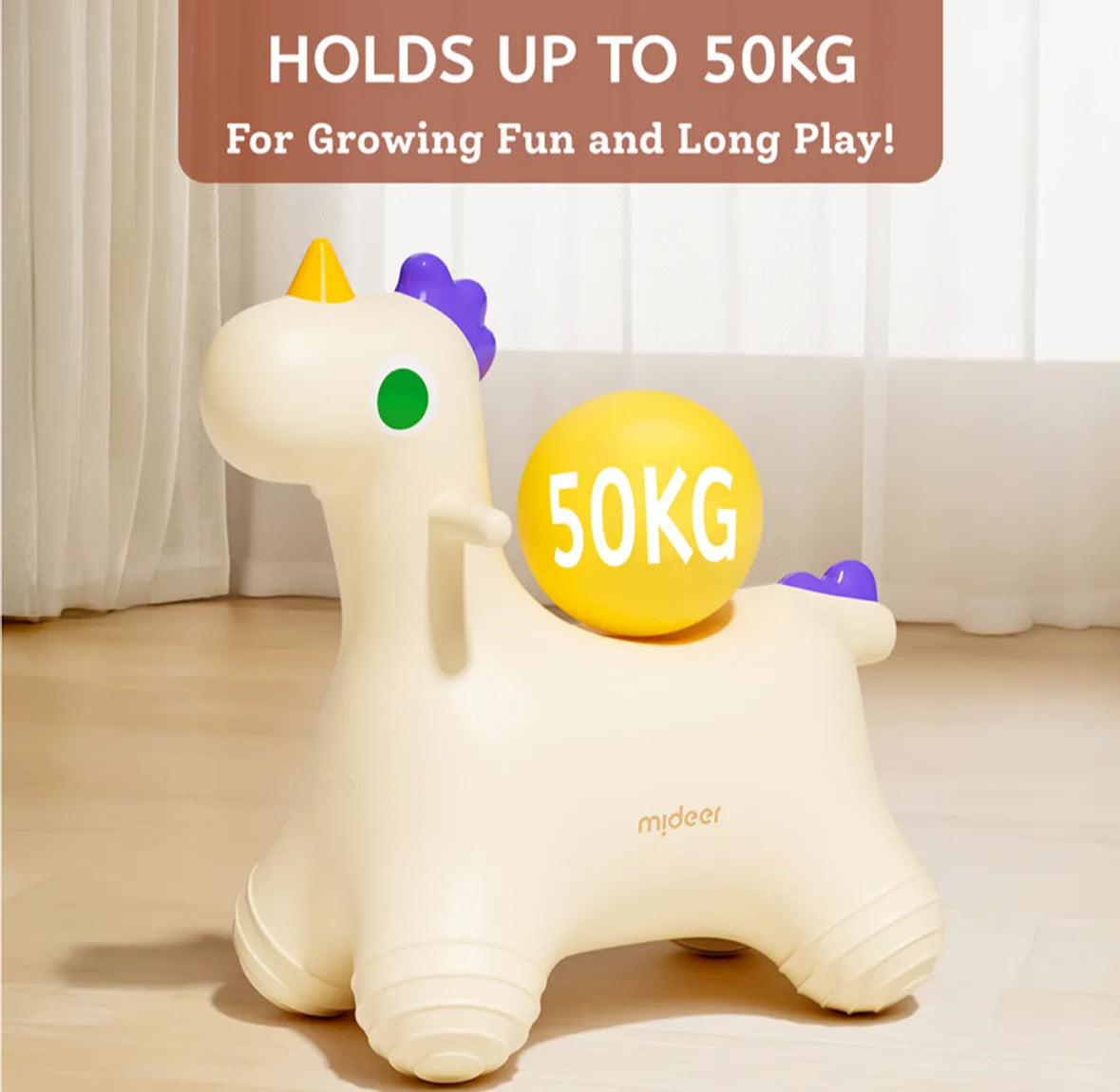 - 4 Safety Protection: The stable design includes outwardly angled legs with anti-slip rings, providing all-around stability and support. Its durable construction, made from thick, pressure-resistant material, guarantees long-lasting use and anti-burst performance. The toy is fully rounded with high elasticity, offering a soft and comfortable ride, while the use of high-quality, safe materials ensures it’s safe for close contact, with no harsh odors.