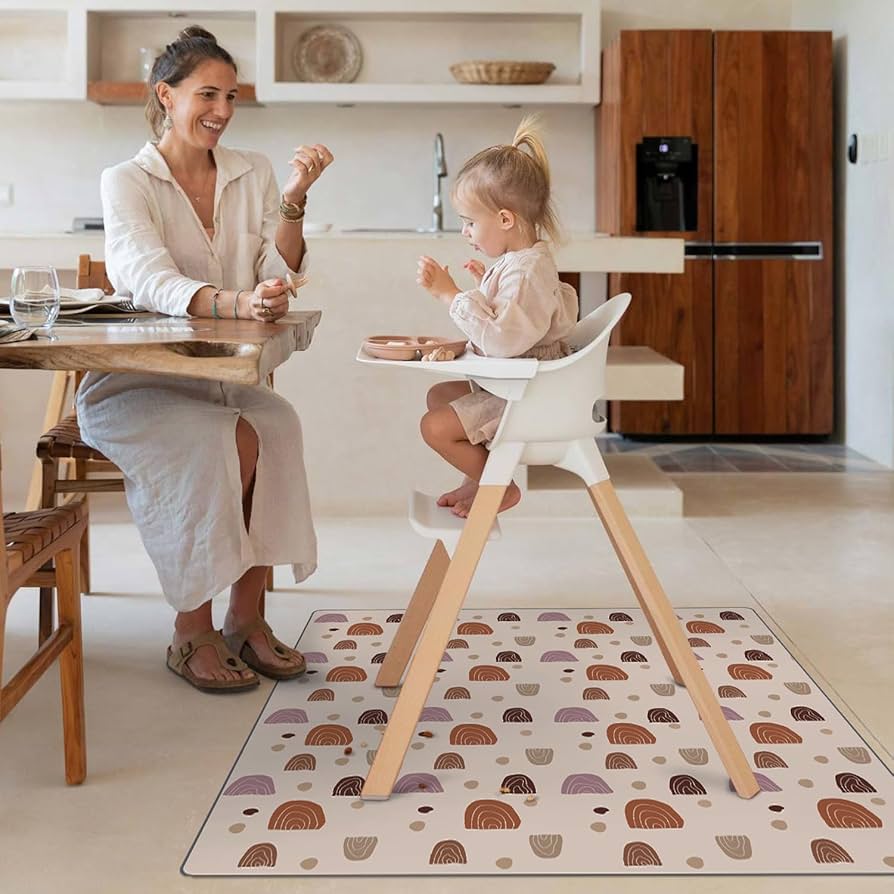 - Clean up the Mess Easily: The splat mat will reduce your time on post-meal cleanup. Place it under the high chair to catch any food that drops off the high chair and protects your floors from mealtime spills or playtime messes