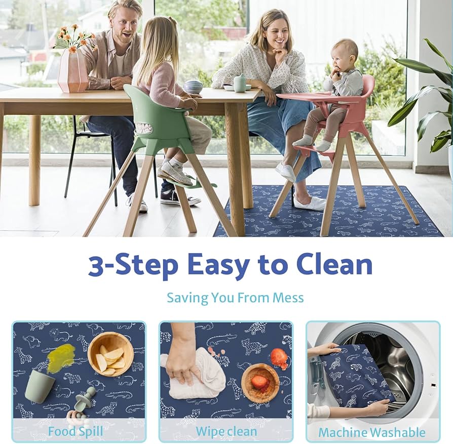 - Anti-Slip Bottom: The high chair mat features anti-slip dots on the bottom that keep the mat in place. The splat mat is not easy to move on the floor, keeping the safety of the baby and mom