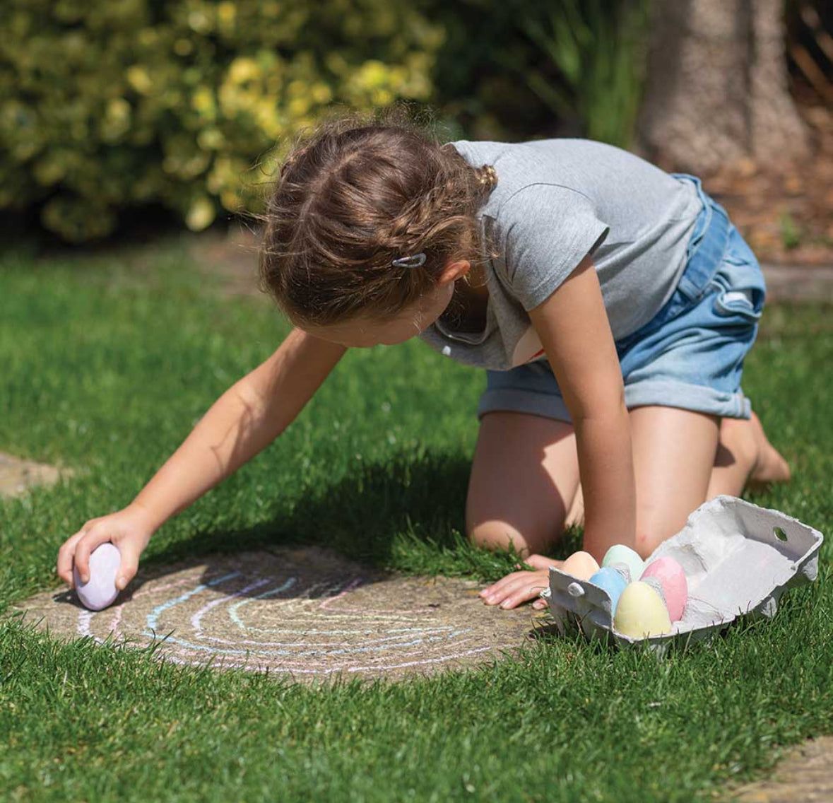 Encourage creative play with our colourful Egg Chalks - perfect for arts and crafts for kids. Busy hands will love to grip and use the egg-shaped chalks on paper, chalkboards and even patio slabs! , , Comes beautifully packed in a cardboard egg box, making it the ideal gift for Easter. Little artists can make their own creations with the six pastel colours - yellow, green, orange, pink, purple and blue. Made from high quality, responsibly sourced materials. Coated in non-toxic paints and lacquers. Conforms to current European safety standards.