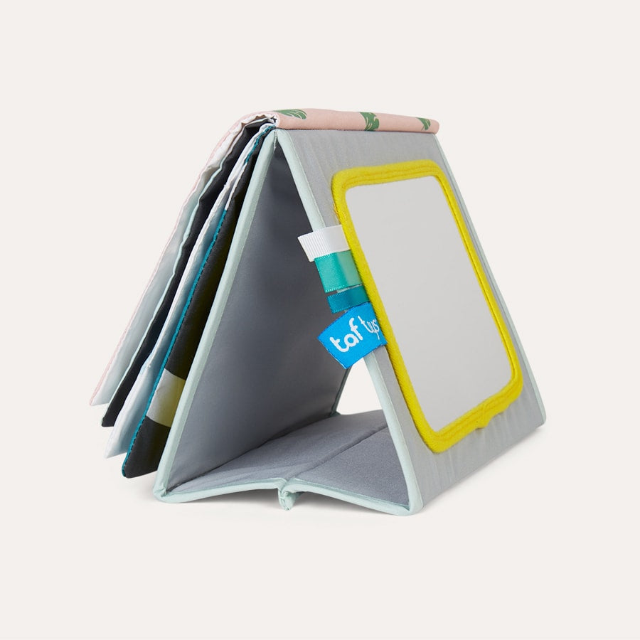 - Side 1: High contrast colors, baby safe mirror and one image focus to develop baby’s senses and emotional intelligence side 2: Rich colors,textures, 3D activities including a teether and a play pocket, to develop baby’s fine motor skills