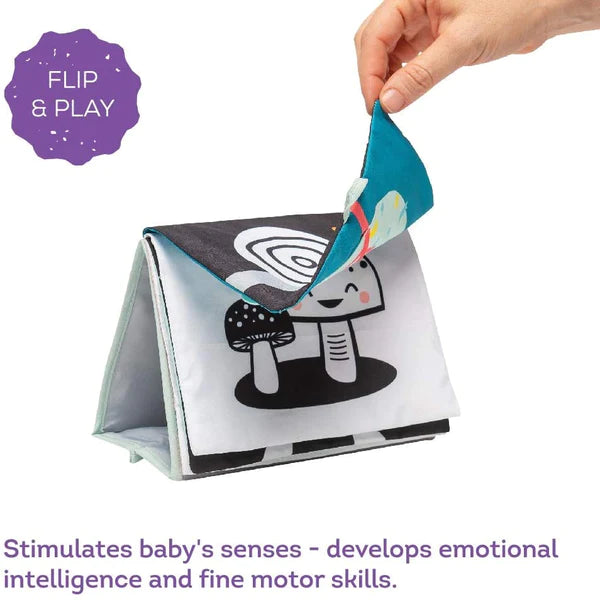 - Soft baby book, with two sides for two developmental stages and crinkle filling for ultimate sensation